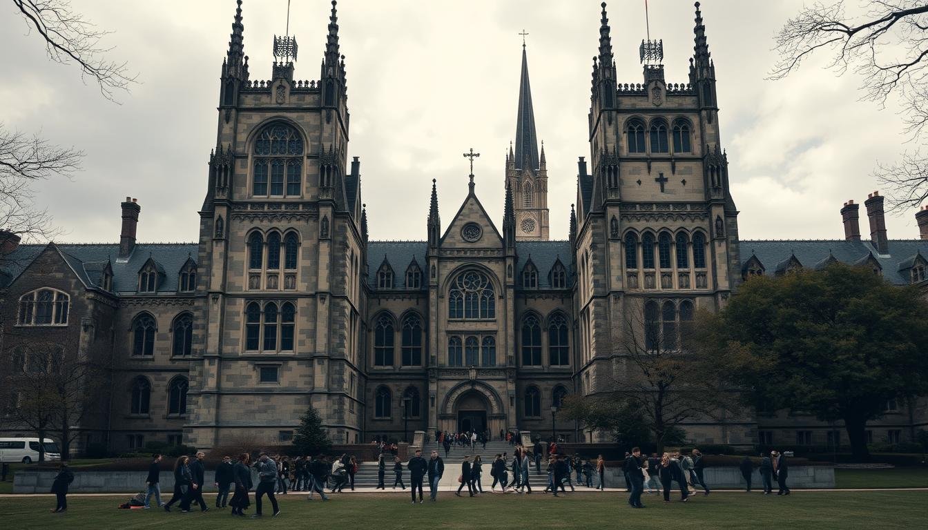 The campus is dotted with gargoyles and other Gothic features, adding to its mystique and charm.